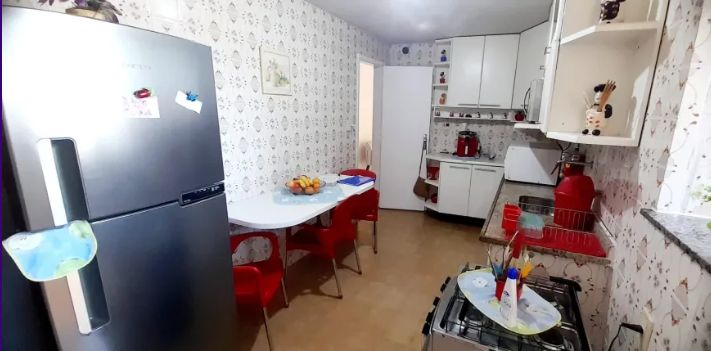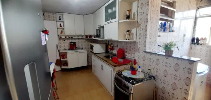 O apto possui três quartos, sendo um suíte, amplo salão todo em porcelanato com varanda, cozinha toda equipada com armários embutidos, área de serviço, dependência de empreadas completa e vaga na garagem.
