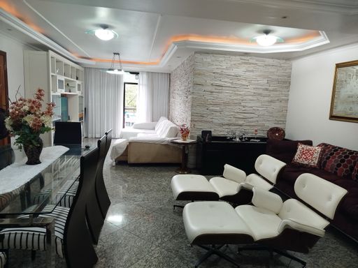 Imóvel com hall de entrada com lavabo, entrada de serviço e social independentes, ampla sala em L em fino acabamento com sistema de luzes diretas e indiretas, dividida em sala de estar e jantar, com acesso a varanda com vista para o Iate, quatro amplos quartos em tábua corrida e com armários embutidos, sendo duas suites e uma suite master com closet e hidromassagem, escritório todo planejado, ampla cozinha com armários embutidos e ambiente de despensa separado, área de serviço e dependência de empregada completo.