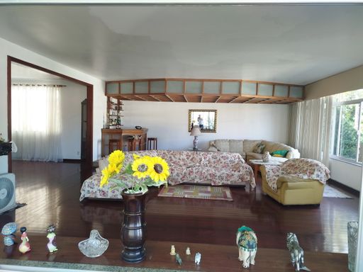 Maravilhosa casa com vista panorâmica para os principais cartões postais do Rio de Janeiro. Toda a casa é muito fresca e arejada, repleta de luz natural e grandes ambientes. A casa possui portão automático com garagem para 4 carros e depósito, jardim frontal, uma charmosa sala de recapção em estilo português com uma atmosfera toda especial de jardim de inverno, dois amplos salões em tábua corrida, um de estar e um de jantar. Uma saleta de passagem banhada por muita luz natural com lavabo, escada de acesso para o sehundo andar toda em madeira maciça e acesso para a copa muito ampla e iluminada, possuindo armários embutidos e cozinha americana que dá acesso a área da piscina, onde se encontra a piscina em alvenaria, com churrasqueira, área de recreação com lavabo e acesso a uma cozinha industrial independente, com toda instalação hidráulica e elétrica novas, dispensa, depósito, um amplo varandão coberto que pode ser convertido em salão de jogos e um terraço gourmet com vista panorâmica para a cidade do Rio de Janeiro, com banheiro de apoio e quiosque com churrasqueira e estrutura para se instalar uma copa completa de apoio.