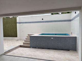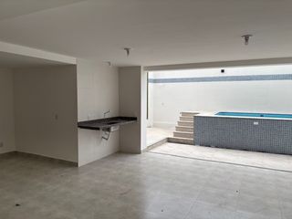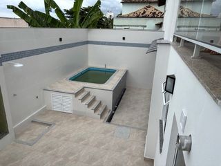 A casa possui jardim frontal, amplo salão em porcelanato, banheiro social, ampla cozinha com possibilidade de se tornar uma cozinha americana integrada, garagem para dois carros, varanda com vista para área da piscina, amplo salão no andar inferior com uma suíte, um quarto de depósito e piscina com cascata... Andar superior com três quartos, sendo uma suíte com dois ambientes com varanda, banheiro para uso comum dos quartos e sala íntima que pode ser revertida em um quarto adicional.